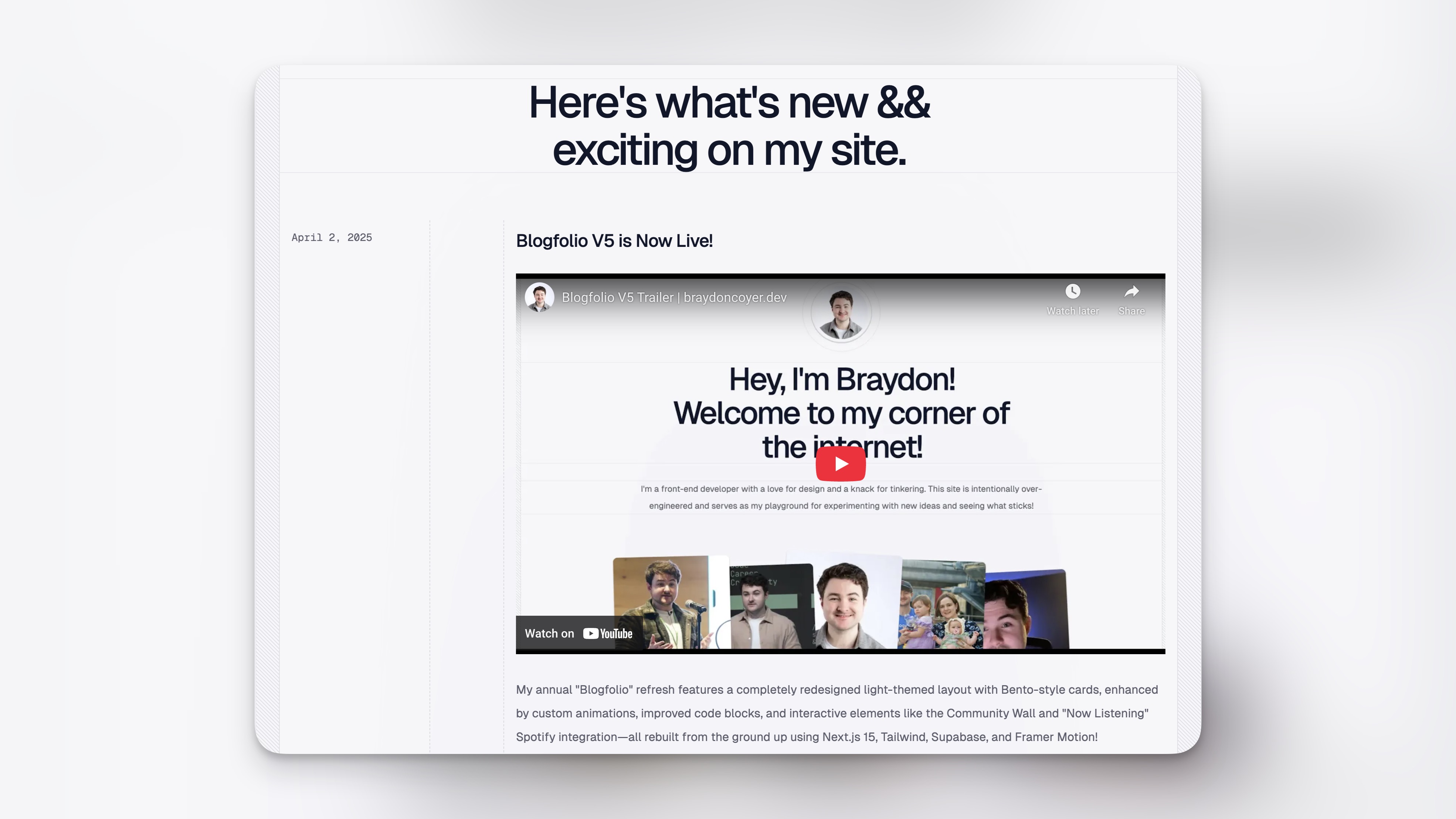 - Kuldar Kalvik: A kindred spirit who shares my love of tinkering and building cool things. Kuldar guided me through creating my Blogfolio trailer and provided code that formed the foundation of my Now Listening Bento. Check out his amazing personal site at kuldar.com!